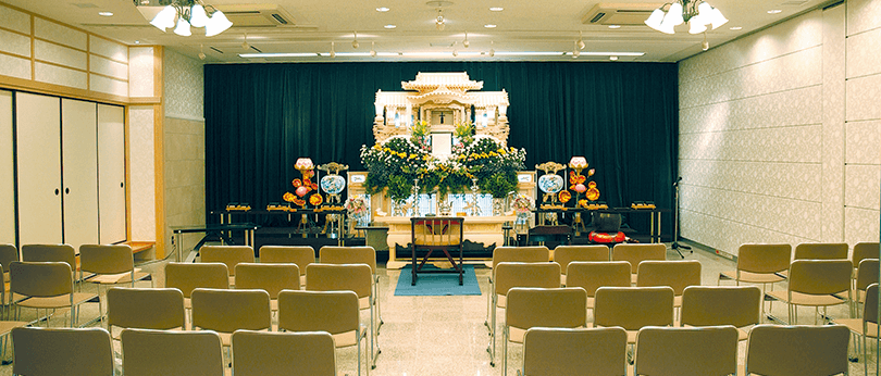 ホーム 施設情報 施設情報 下の画像をクリックしてください。 葬儀スタイル 各宗派葬儀一式(個人葬から一般葬まで)・無宗派 施設概要 ホール「紫光1」(80名)、ホール「紫光2」(60名)、オープン使用時イス200席※少人数の家族葬も可能 特記事項 冷暖房完備、109台収容大駐車場完備(無料)、控え室(TV付ジェットバスルーム有)、当社専門社員による式進行一切(マイク設備無料)、献茶ご奉仕 供花注文 直接ホール(076-432-4440)にお電話ください